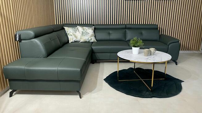 Nowy Narożnik Skórzany 100 % skóra naturalna wymiar 2,35 x 2,75 ruchome zagłówki , ruchomy ...